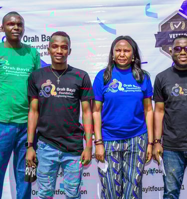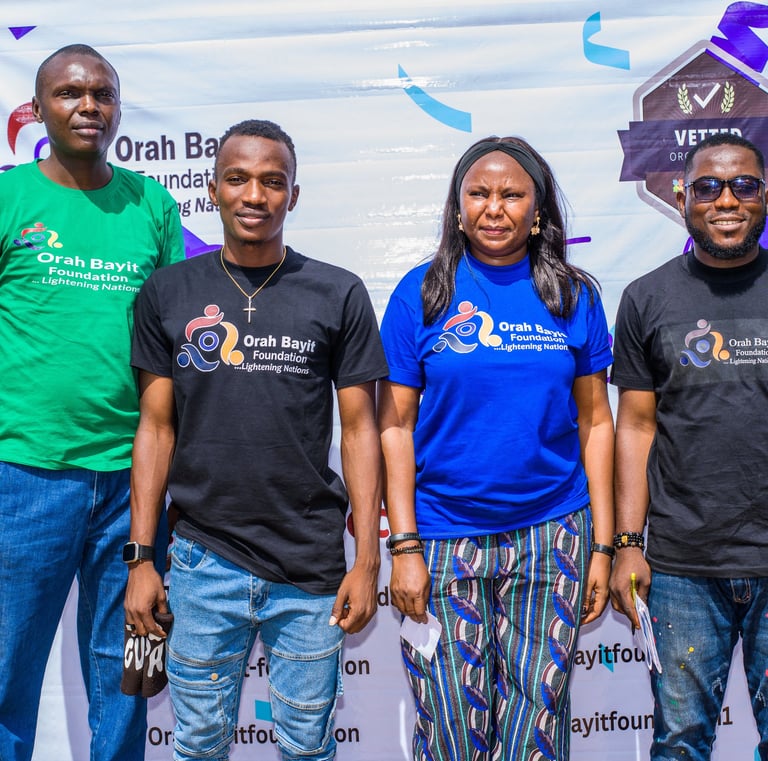 Orah Bayit Foundation is a Non-Governmental Organisation founded in 2019 and incorporated in 2021. The foundation is dedicated to advancing and transforming the lives of women and children, especially the girl child. Our work is driven by the belief that when women and children are empowered, entire communities benefit socially and economically. We focus on creating opportunities for children to learn, make informed decisions and thrive, while also empowering women and girls for maximum impact in their homes and communities. Through targeted programmes in education, empowerment, sports, civic engagement and community outreach, Orah Bayit Foundation contributes to inclusive development that yields long-lasting, transformative change.